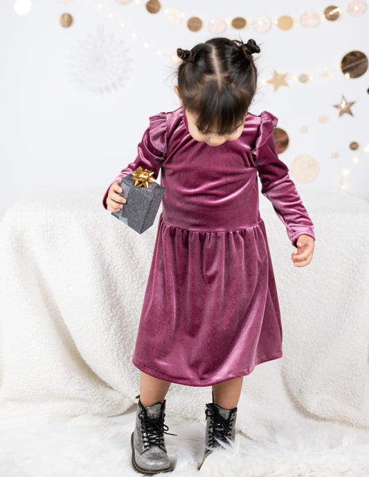 Jurkje ruffle | Velvet Old Rose | Handmade