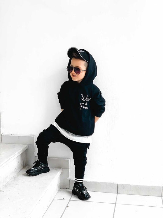 2-delige set | Hoodie joggingpak Logo | Wild & Free | Black