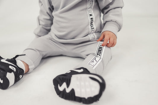 2-delige set | Sweater Cable Grey | Broek cargo Checks Black