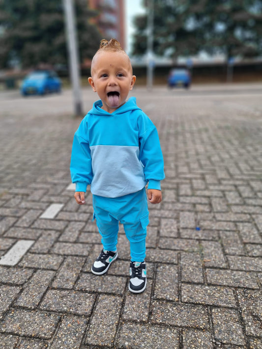 2-delige set | Hoodie joggingpak | 2-kleurig Sky Blue